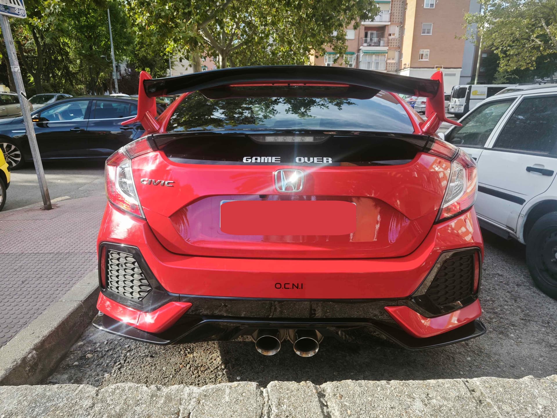 Saliendo del Corte Inglés de Cornellà esta tarde, FK7 rojo con Alerón del techo estilo Mugen, yo era el que iba delante ![]()