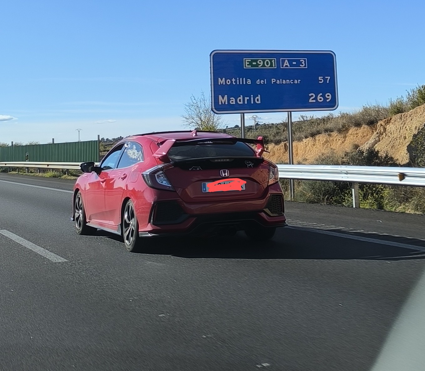 yo me crucé con un civic rojo por la zona de Guadalajara, yo voy en un ep2 Sport rojo también. Nos ibamos adelantando y jugando, todo muy sano y divertido. Los dos íbamos oc nuestras parejas y al salir de Guadalajara nos despedimos. Por si está por aqui. Saludos