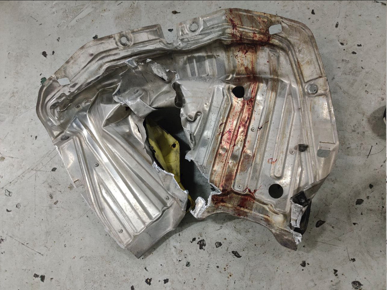 Madre mía cómo quedo en cubre cárter! Si te dejan uno intacto, puedes comprar chapa de aluminio del mismo grosor y tomando todas las referencias lo puedes hacer tú mismo (lo único que te quedaría liso, pero la función te la haría igual).