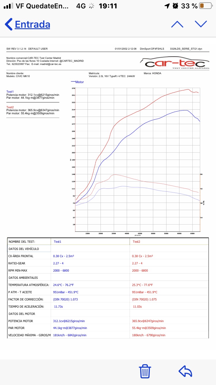 Además ya le he hecho una repro en Car TEC , y va de lujo . Ahora os incorporo la Gráfica del Dyno . Ah por cierto el coche es enero 2020 .